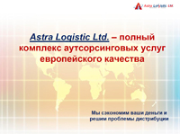 Ресурс для размещения заявки на транспортировку в режиме онлайн - позволяет авторизованным пользователям получить информацию и рефмашине, спланировать маршрут, заключить договор, оплатить услуги компании, узнать статус груза и его местонахождение, указать способ загрузки и др. в режиме on-line. ![]() http://www.coldandcool.com/rus/ Обеспечение холодовой цепи при решении нестандартных ситуаций ![]() http://www.coolchainmanagement.com/ Astra Logistic Ltd. предлагает полный комплекс аутсорсинговых услуг европейского качества ![]() Складские услуги ![]() Обеспечение холодовой цепи